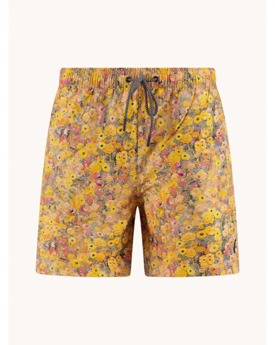 A fish named Fred swimshort Klimt Flower features an all-over floral print inspired by the iconic style of Gustav Klimt – blending creativity with comfort. Make a splash with art this summer.
