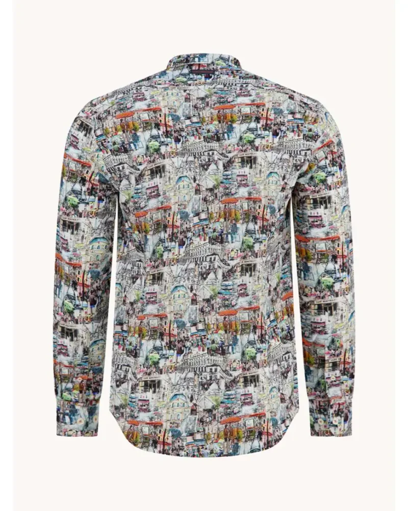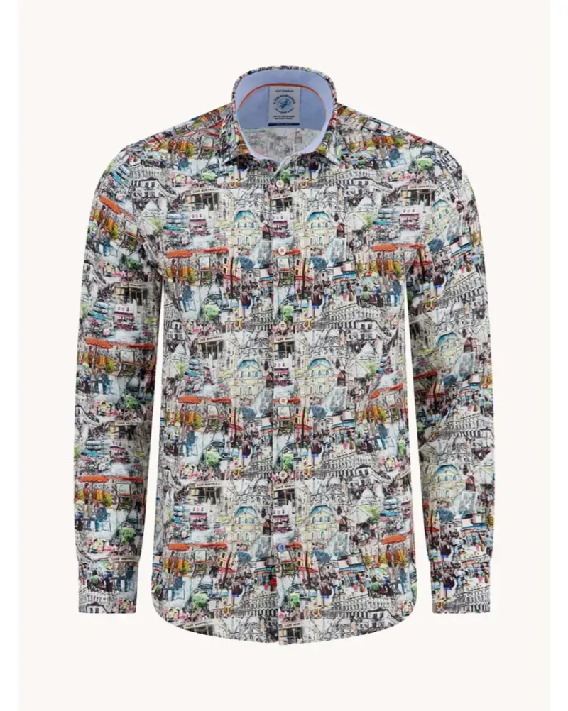 Think of it as wearable sightseeing. The Shirt Sketch from A fish named Fred wraps a whole cityscape around your torso, complete with illustrated buildings, café scenes, and the kind of charming chaos only found in backstreet bistros and sketchbooks. It’s like taking a city break without leaving the house.