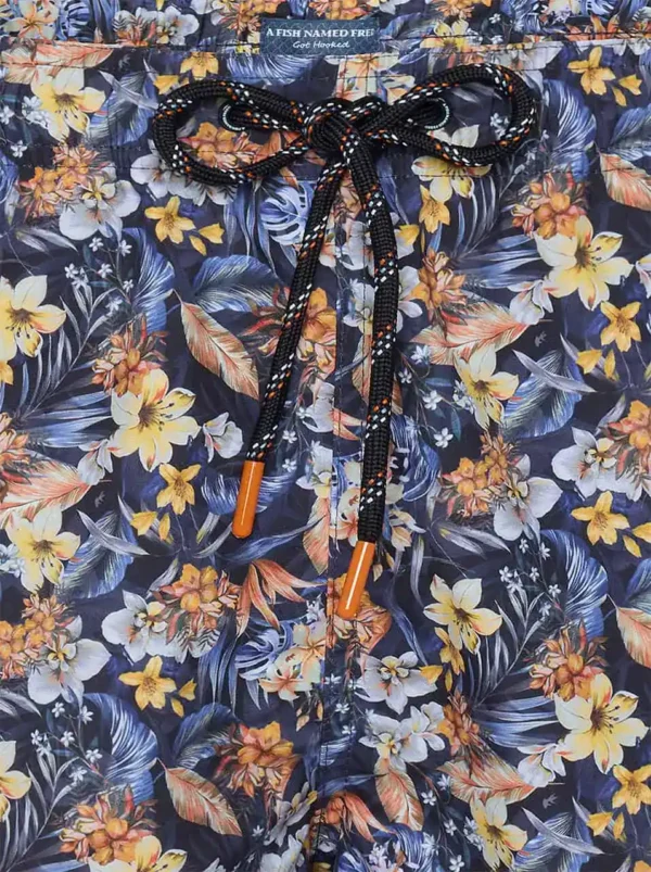 Introducing the navy Floral Print Swimshorts from A Fish Named Fred – the perfect blend of comfort and style for your summer adventures. Designed for those who appreciate a touch of personality in their swimwear, these shorts feature a beautifull floral navy background, making them a standout choice for beach outings, pool parties, or simply lounging by the water.