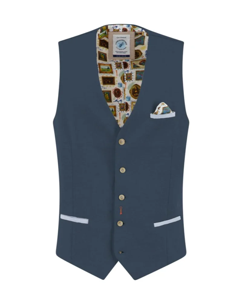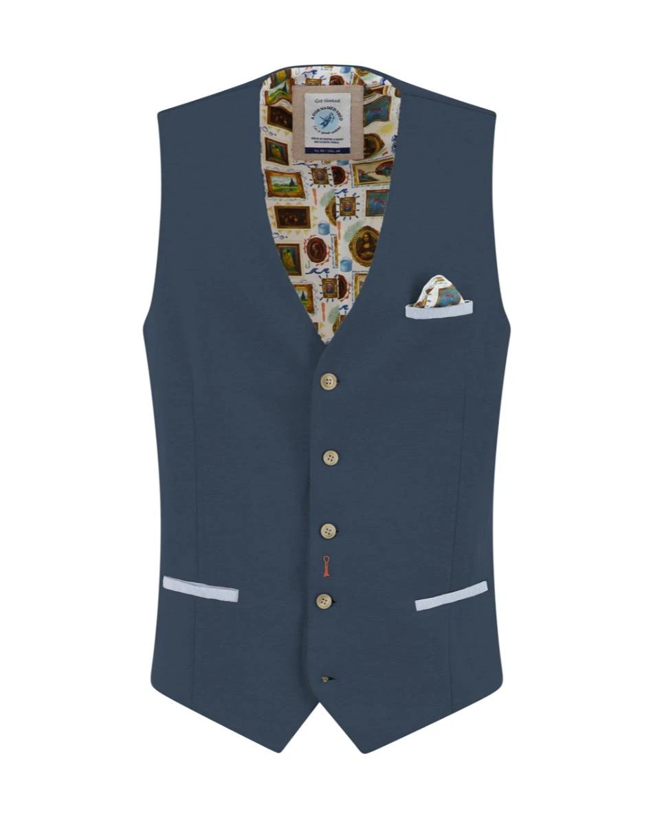 Add some flair to your summer look with the Piqué Waistcoat by A fish named Fred. Made from soft, stretchy piqué fabric and finished with signature Fred details like a matching pocket square, colorful lining and playful stitching. Wear it under a blazer or rock it solo with a shirt – this waistcoat is all about bold summer style.