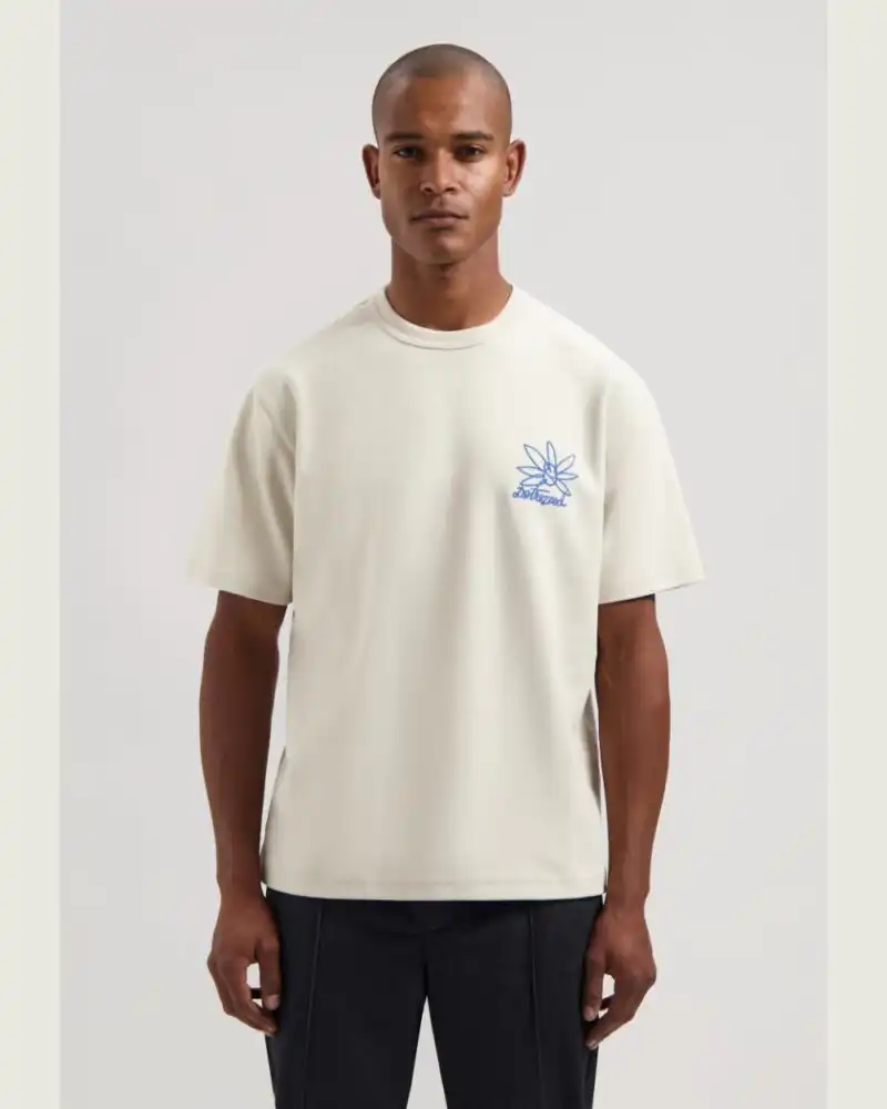 The Banks Tee is more than just a t-shirt—it’s a bold statement. Designed in an oversized fit, this piece perfectly combines comfort and trendiness for a relaxed yet stylish look, making it the ideal choice for everyday wear. At the heart of the Banks Tee is the bright blue chainstitch embroidery of a playful flower on the chest. This vibrant design is inspired by the energetic spirit of car donuts on the iconic Goodwood racetrack—bold, fun, and full of life.