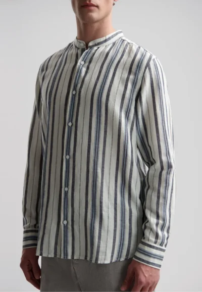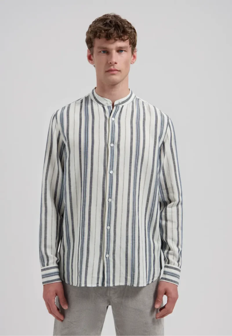 Our Gideon Shirt with a Mao collar is for when you’re after something a little different. Made in a cotton-linen blend with a multi-colour stripe, it’s lightweight, fresh and easy-going.