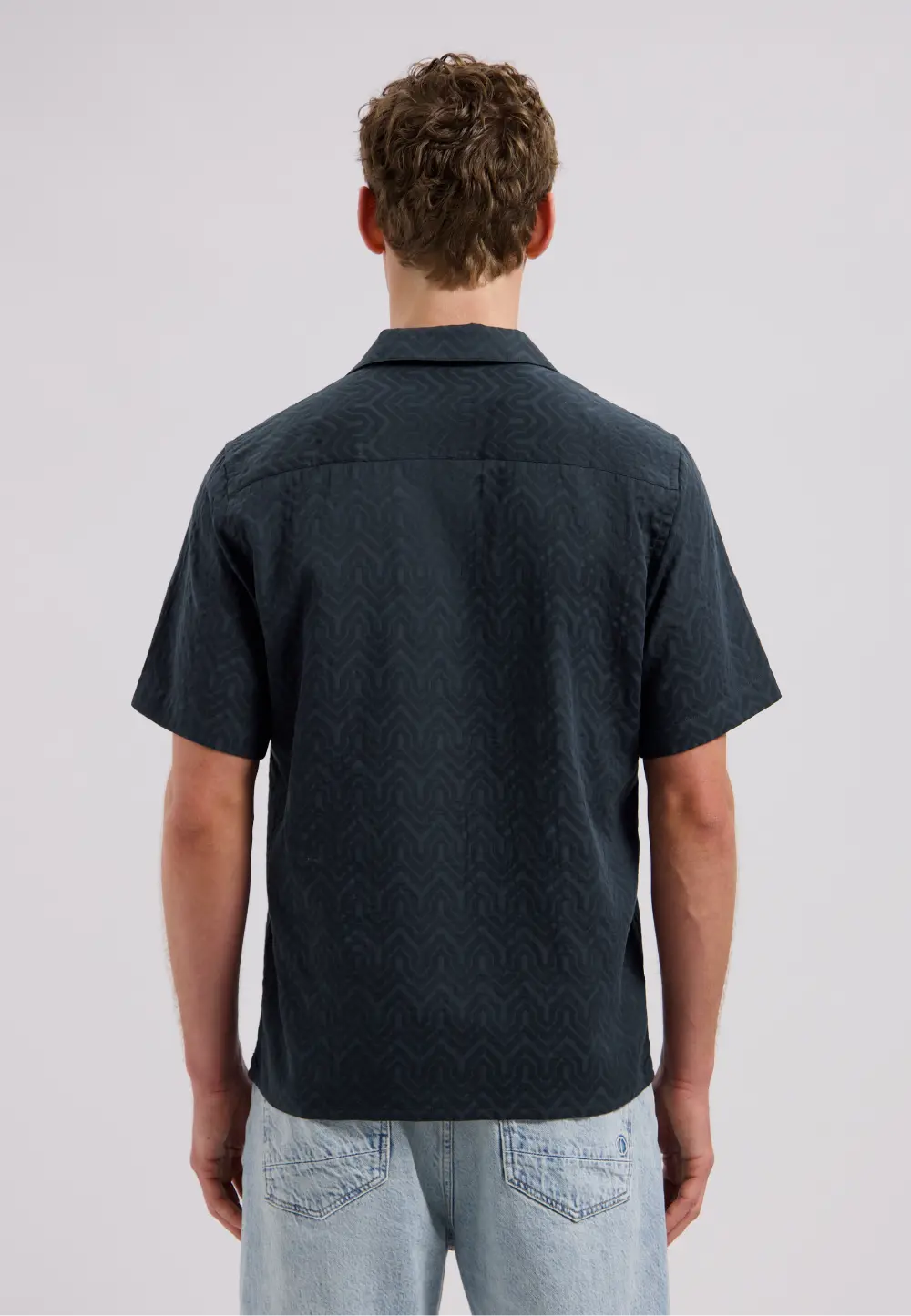 The Jacob Resort Shirt is made from a cotton–lyocell blend, combining breathability, softness and a smooth drape that stays cool in the heat. Finished with a tyre-track pattern and a subtle seersucker effect, where the fabric is lightly puckered to lift it off the skin for extra airflow.