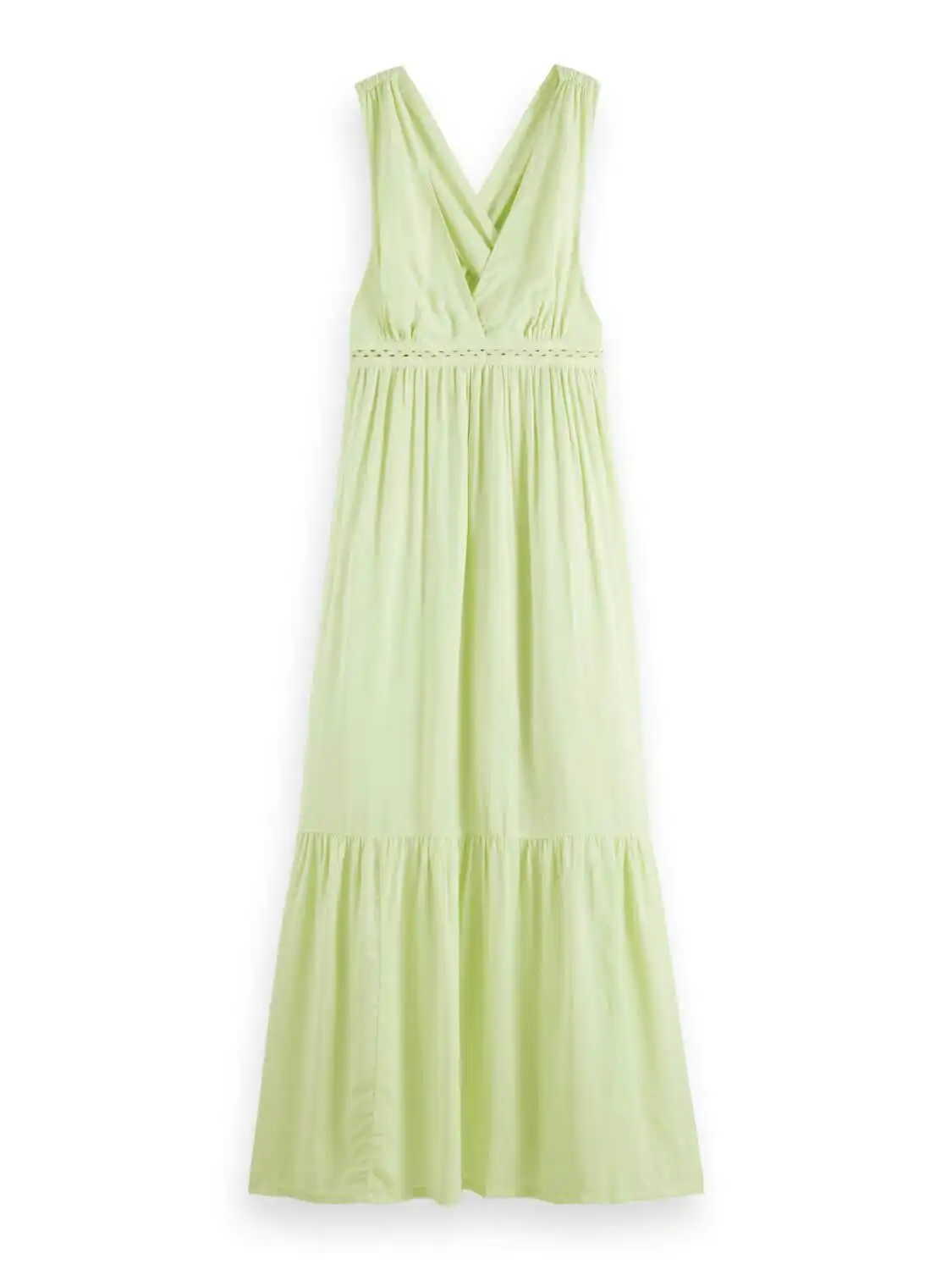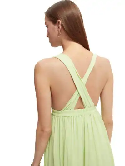 This sweet maxi dress comes with an open back for both effect and comfort. Dress it up for a gala dinner and dress it down for the perfect day at the beach.