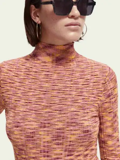 Scotch & Soda 168896: Ribbed Mock Neck Pullover Deep Raspberry Melange