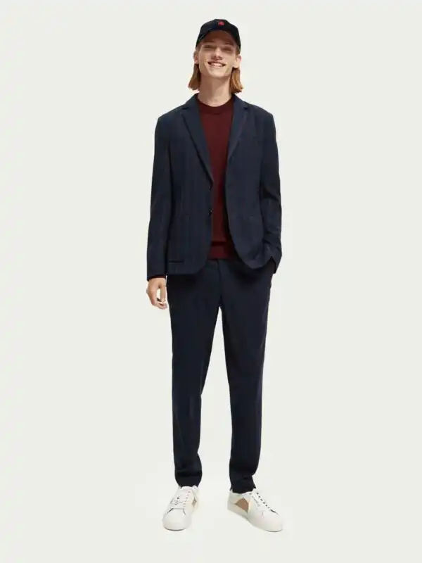 The Mott blends comfort with style. Mid-rise with a super-slim leg, this tapered fit is made with stretch and has a little give on the half-elasticated waistband. It’s versatile, modern and an effortless choice for the everyday wardrobe. Our latest variation comes yarn-dyed with a stripe design for any-time wear.Match this with jacket article 169038 and you have a suit.