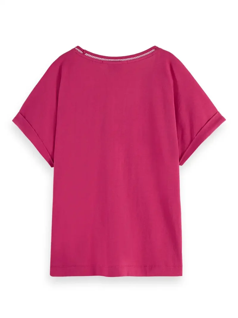 Scotch & Soda 169657 : Relaxed fit scoop-neck ladder tape T-shirt, Cherry pie