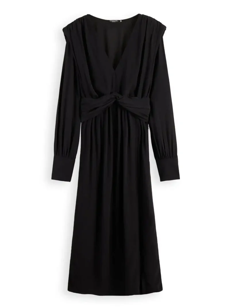 Scotch & Soda 170956 : Long-sleeved belted V-neck midi dress Black