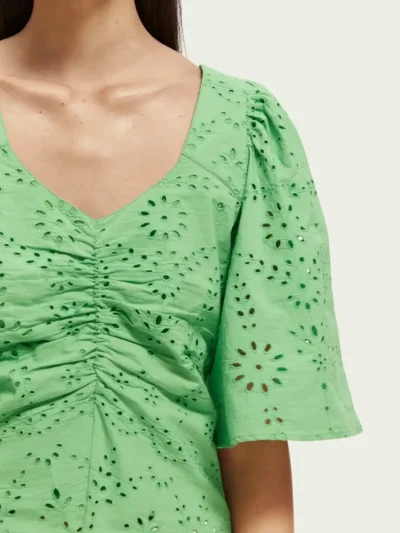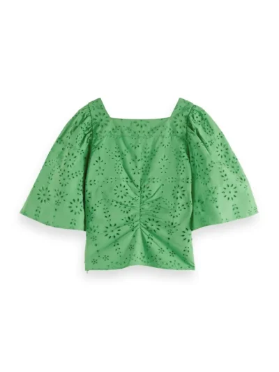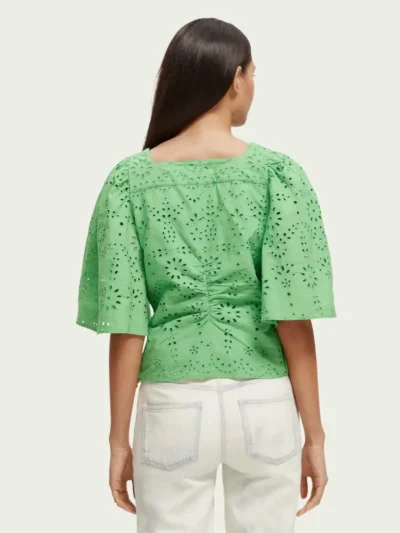 Scotch & Soda 171884 : Flutter sleeved organic cotton top, Bright Parakeet