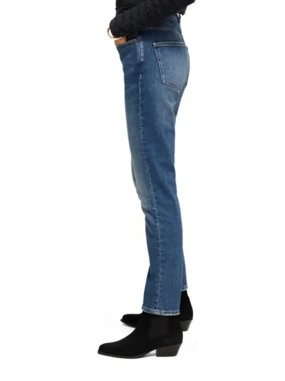 These High Five slim jean comes in a comfortable stretch indigo base with a soft green tini. The wear is natural and authentic.