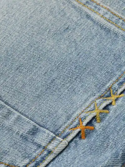 The Ralston regular slim fit in an authentic non stretch pure indigo base. Stonewashed to an amazing vintage tone to show off the amazing character of the fabric, and topped with sashiko stitch repairs.