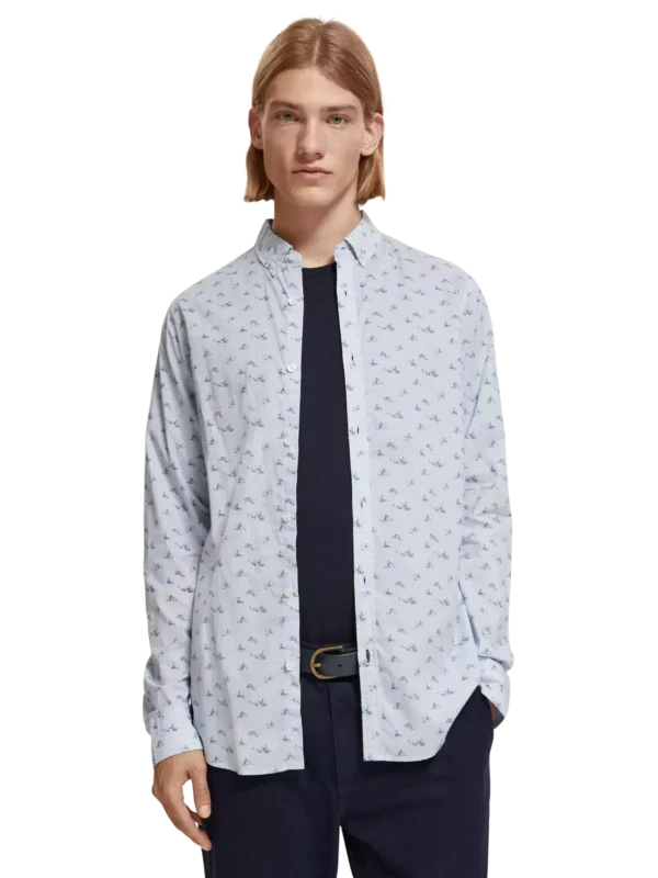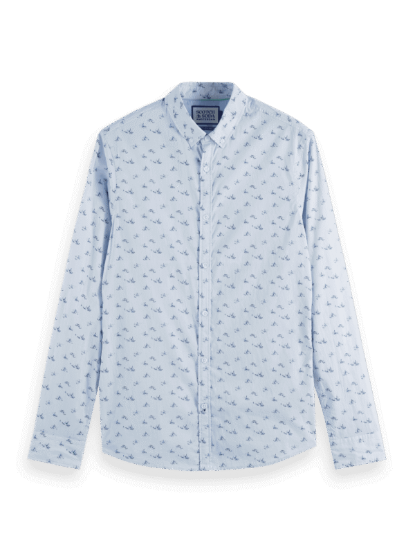 The button-down shirt is an essential in any wardrobe rotation. Cut for a slim fit, this buttoned style features a playful all-over print and has the stylish practicality to be worn anytime, anywhere.