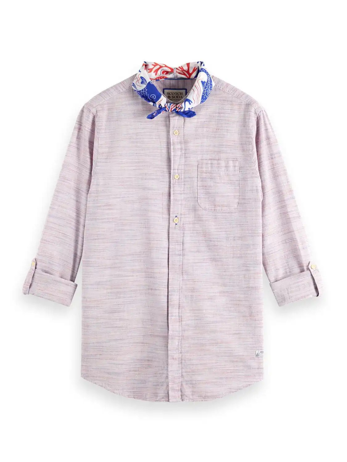 This men’s shirt is thoughtfully designed with a modern stand-up collar for a unique touch of refinement. The long sleeves provide additional coverage, ideal for layering or wearing as a stand-alone piece. Easy maintenance is key — this shirt can be washed at 30 degrees on a normal machine cycle, saving you time and effort without compromising quality or comfort.