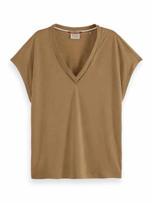 Scotch & Soda 177324 : V-neck ladder detail loose fit, light army