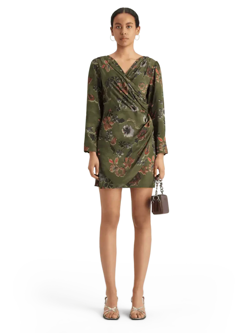 Scotch & Soda 177732 : Mini viscose jacquard wrap dress, Tapestry military