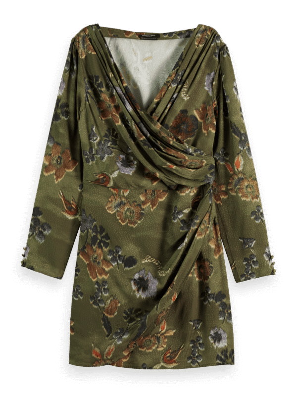 Scotch & Soda 177732 : Mini viscose jacquard wrap dress, Tapestry military