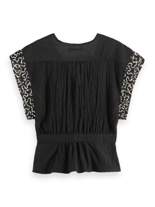 Scotch & Soda 178881: Wrap top with sequin sleeve detail, Evening black