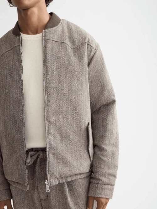 A reversible padded bomber jacket with a yarn-dyed finish – two distinct looks in one versatile jacket. Colour Demitasse or Eggnog.