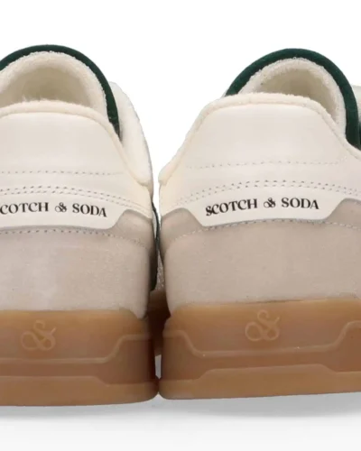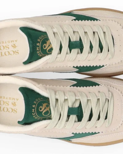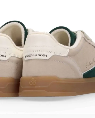 Scotch & Soda Slim Suede Leather Low Top Trainers , Beige/Green