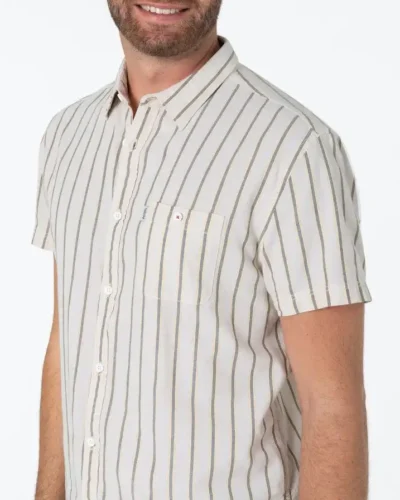 Timezone – Basic short sleeve shirt, ecru, green, yellow