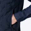 Hybrid-DeLuxe! Waterproof and windproof quilted vest made from a high-performance material mix. Classic fit with high stand-up collar with ribbed inside, zipped piped pockets and elastically edged armholes and hem. Details: silver-edged seams on the inside, front zipper with storm flap, shoulder band.