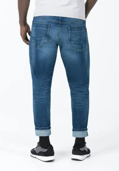 The super-casual jeans offer maximum comfort and freedom of movement with their ultra-relaxed fit, low crotch, and tapered legs. They have a modern, masculine silhouette in a cool used wash with permanent seat creases and light distressing. The jeans are made from high-quality, sturdy, and slightly stretchy vintage rigid denim, crafted from a premium cotton blend with elastane. They also feature deep, round side pockets, coin pockets, and patch back pockets.