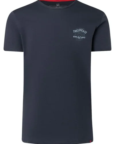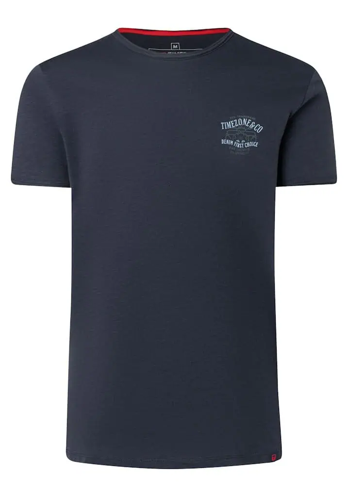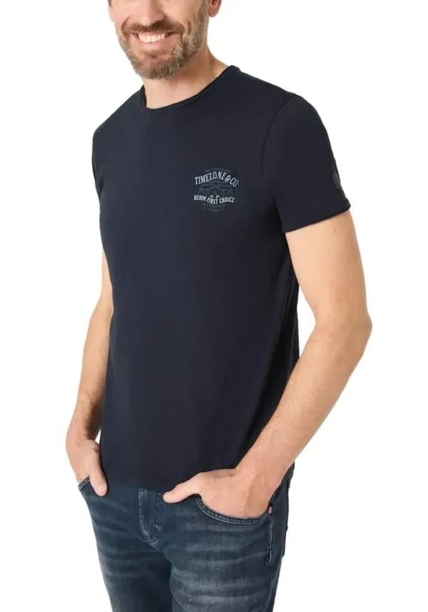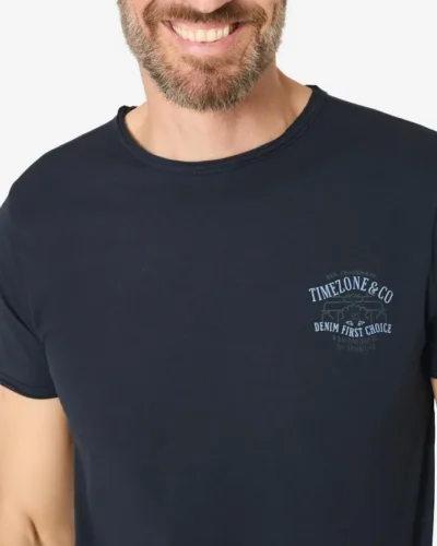 Casual Timezone printed T-shirt with a front left chest print. Classic round neck and sporty flatlock seams at the sleeve cuffs and hem. The quality: super-soft, lightweight single jersey fabric made of high-quality, pure cotton with a trendy garment-dyed vintage look.
