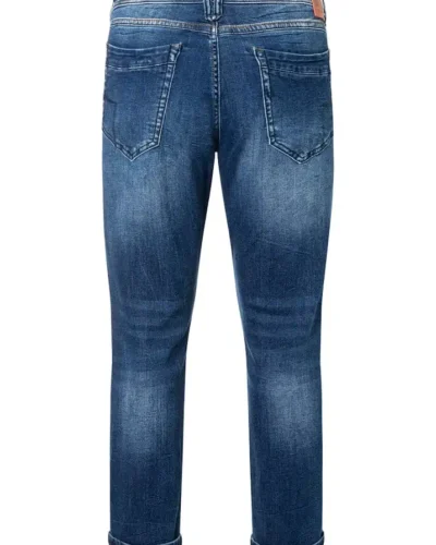 A high-quality denim jeans. With super-flexible and soft denim quality made of cotton stretch, a perfect fit with a slim leg and medium rise and a blue wash with integrated seat pleats and lighter wash areas. Casual five-pocket style with redesign of the front and back pockets, real leather details, eye-catching metal rivets and labels and two-tone decorative stitching.