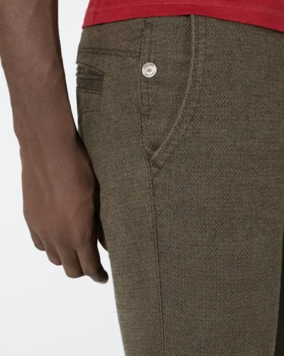 Pants that are more casual than chinos and more comfortable than jeans. The smart, regular-fit model is made from a high-quality, stretchy cotton blend and has the characteristic, finely rippled structure. Classic waistband with belt loops, one button and metal zip. The front pockets and the two back pockets have a narrow piping edge. Best worn with basics.