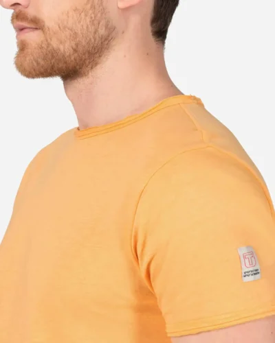 A clean T-shirt design with a casual cut and rolled edges at the round neck and cuffs. The fabric is made from soft slub jersey made from high-quality, pure cotton. Its characteristic feature is the irregular, lively surface created by intentionally thickened yarns. A soft print at the neckline replaces an intrusive woven label. Available in a wide range of colors.