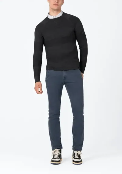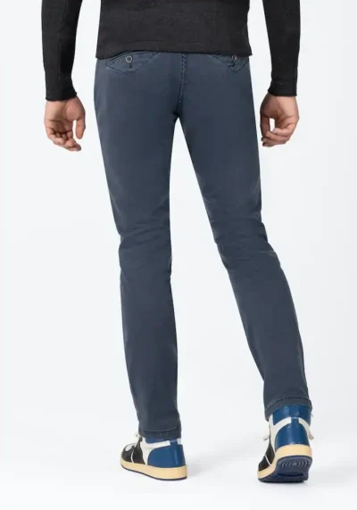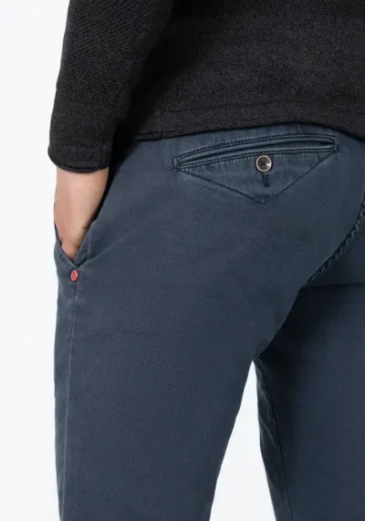 Basic piece, collector’s item and one of the most important items of clothing for a man: casual chinos made from an elastic cotton blend in peached stretch dobby quality. Robust, masculine look in a super comfortable slim fit with a medium rise, two front pockets, two narrow piped back pockets and a small coin pocket. Distinctive waistband processing with overlap solution and robust AMF stitching on the pocket edge at the front. Worth mentioning: The cool, washed vintage look.