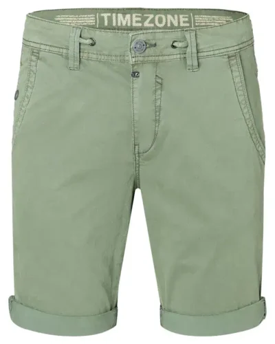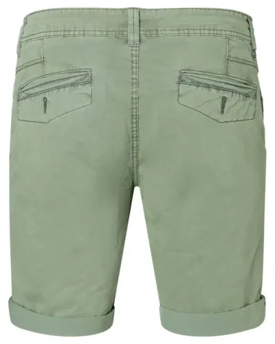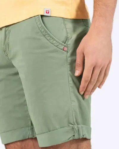 With a sporty twist and a clean design: these casual shorts in a summery, lightweight twill stretch fabric. They feature a masculine slim fit with a mid-rise waist and loosely turned-up legs. They feature a drawstring waistband, welted side pockets, welted back pockets with decorative buttonholes, and a side coin pocket with a snap closure. The exclusive garment-dye and wash process ensures vintage coolness. Still the best combination: shorts and a polo shirt or T-shirt.