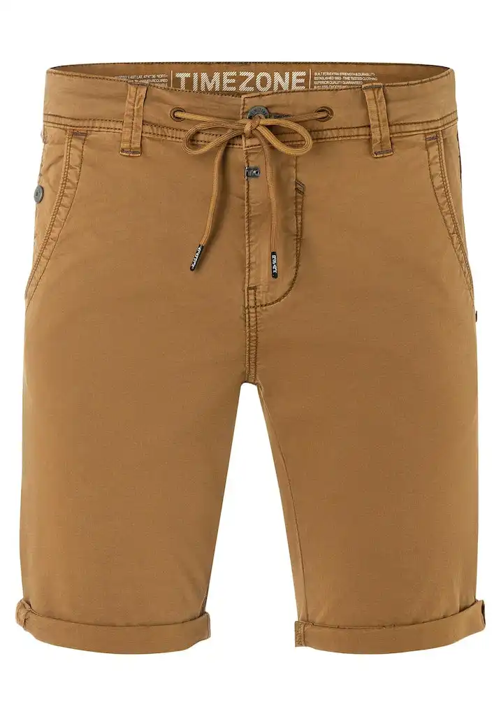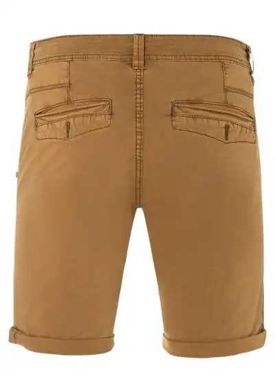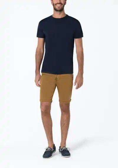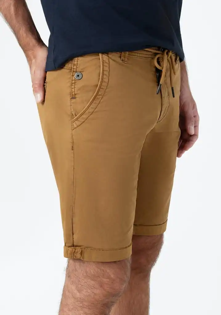 With a sporty twist and a masculine design these casual shorts are perfect for summer. Light, stretchy, and heavily washed twill quality made from a cotton mix. Slim fit with a medium waist and loosely rolled up trouser legs. These feature a waistband with drawstring, slit pockets with piping, piped back pockets with decorative button placket and a side coin pocket with snap fastener.