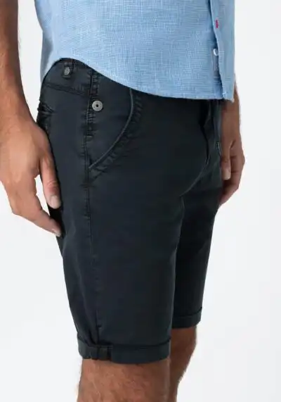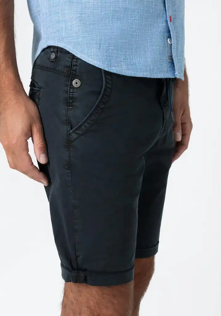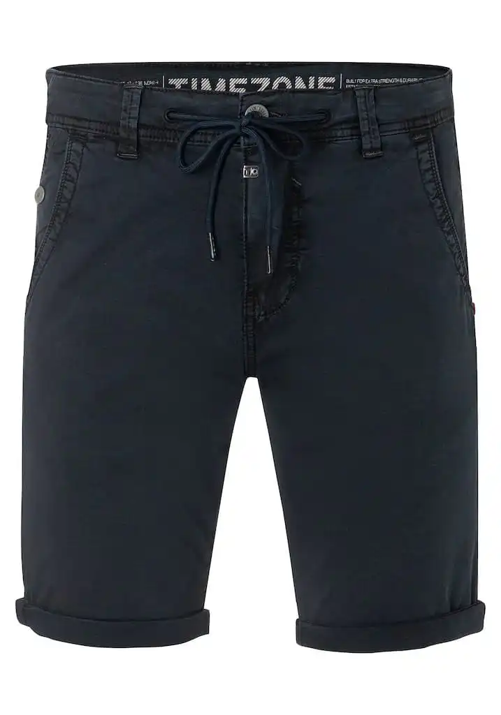 With a sporty twist and a masculine design these Timezone twill cotton casual shorts are perfect for summer. Light, stretchy, and heavily washed twill quality made from a cotton mix. Slim fit with a medium waist and loosely rolled up trouser legs. These feature a waistband with drawstring, slit pockets with piping, piped back pockets with decorative button placket and a side coin pocket with snap fastener.