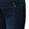 This casual jeans model made of comfort loop denim (cotton-polyester mix with elastane) combines the look of classic jeans with the comfortable wearing properties of jogging pants. Due to the technical fabric construction, it offers incredible freedom of movement and at the same time a great style. The slim fit is one of the most popular cuts and, in addition to the perfect fit, shows its all-rounder qualities when combined. Very dark wash with slight abrasions.