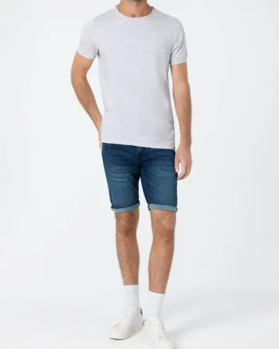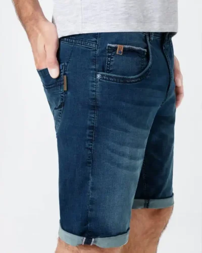Follows every movement and is a fashion classic: the ultra-comfortable stretch shorts in light cotton-denim quality. In an optimally casual slim fit with a medium waist and short, slim legs. The model comes in a dark blue Royal Blue wash with lighter areas, permanent seat creases, and robust seam details. In a modern five-pocket style, it is the ideal basic for the summer. If you like, you can casually roll up your leg to show off the cool selvage edge