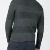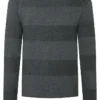 The model is made of a soft cotton-viscose mix with a finely knitted and subtle stripe structure has a classic regular fit with sporty raglan sleeves and is extremely comfortable to wear. The sweater comes with rolled edges at the round neckline, the cuffs, and the hem. Inspired by the sweatshirt: the triangle detail on the front neckline.