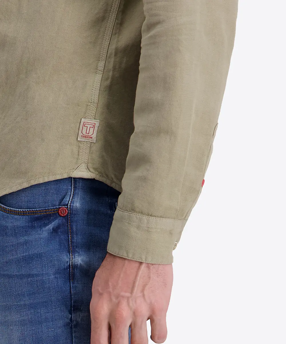 Timezone Stand-up-collar Shirt , Light Khaki