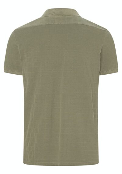 The interesting jacquard piqué jersey has an elaborate, tonal striped pattern and a casual color wash with a garment dye effect. This style with a short, narrow button placket, matching logo embroidery on the chest, narrow shoulder yoke and casually slit side seams.