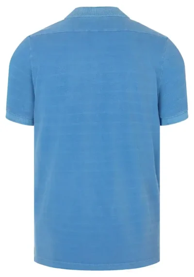 The short-sleeved polo shirt is a mixture of a polo shirt and t-shirt and comes with the characteristic flat-knit collar. The focus here is clearly on the material. The interesting jacquard piqué jersey has an elaborate, tonal striped pattern and a casual color wash with a garment-dye effect. A model with a short, narrow button placket, matching logo embroidery on the chest, narrow shoulder yoke and casually slit side seams.