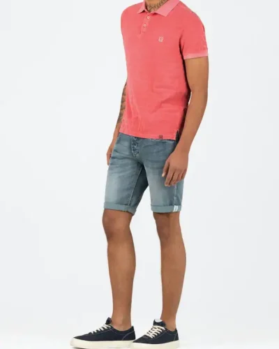 The short-sleeved polo shirt is a mixture of a polo shirt and a t-shirt and comes with the characteristic flat-knit collar. The focus here is clearly on the material. The interesting jacquard piqué jersey has an elaborate, tonal striped pattern and a casual color wash with a garment-dye effect. A model with a short, narrow button placket, matching logo embroidery on the chest, narrow shoulder yoke and casually slit side seams.