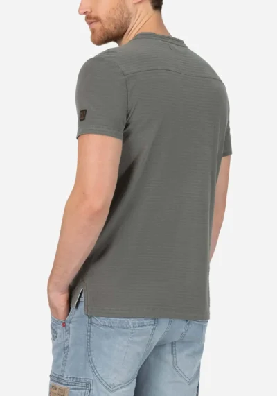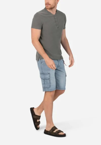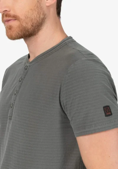 The Henley t-shirt is the well-known alternative to the polo shirt and represents effortless style. Its cool look comes from the lack of a turn-down collar. Instead, it features a round neck and a short button placket that should always be worn open, never buttoned! The focus here is clearly on the material. The interesting single jersey features a fine, tonal, and slightly textured stripe pattern and a casual color wash with a garment-dye effect.